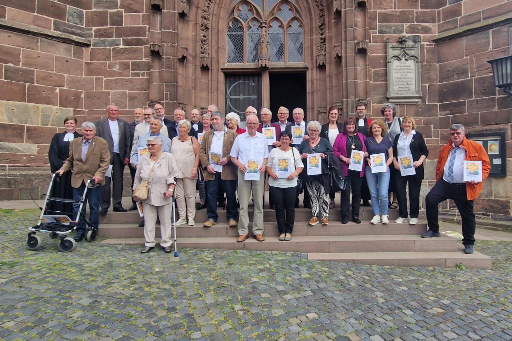 Nachdem in den letzten Jahren die Jubiläumskonfirmation ausfallen musste, feierten dieses Jahr drei Jahrgänge zusammen die Goldene, Diamantene und Eiserne Konfirmation. Einige hatten einen weiten Weg auf sich genommen, um an der Feier teilzunehmen und die alten Klassenkameraden am Ort der Schulzeit wiederzusehen. In dem Gottesdienst wurden auch Elice und Leon frisch konfirmiert. Beide haben am Konfirmandenunterricht der Schule bei Pfr. Heinisch teilgenommen und haben sich entschieden, auch weiter im christlichen Glauben zu leben. In Vertretung für die Landeskirche sprach die Referentin für Sonderseelsorge, Pfrin. Nicola Haupt, zu den Gästen. Sie hatte ein Stück fair gehandelte Schokolade für jeden dabei – als „Proviant“ für eine lange „(Lebens-)Wanderung“.