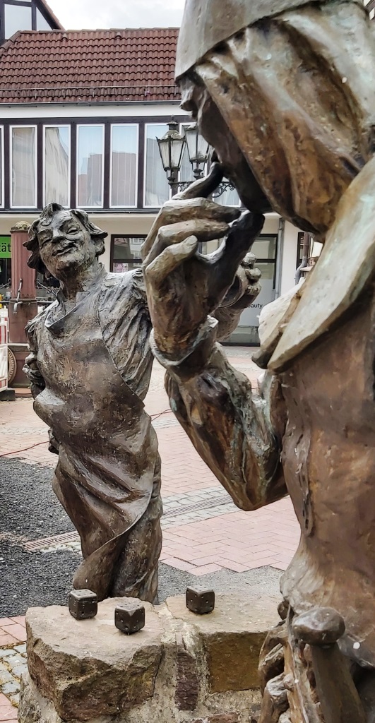 Am Dienstagnachmittag machten wir einen kurzen Ausflug in die Stadt. Bei drückender Hitze schafften wir es noch bis zur nächsten Eisdiele. Dort erfuhren wir etwas von der Würfelsage und dem Würfelturmfest der Stadt Hofgeismar: Im Mittelalter hatte ein Bürger die Stadt Hofgeismar durch ein Würfelspiel von einer Belagerung befreit. Die Belagerer hatten mit 3 Würfeln eine 17 gewürfelt – der Sieg war schon sicher. Aber der Hofgeismarer stürzte den Würfelbecher und warf eine 18!